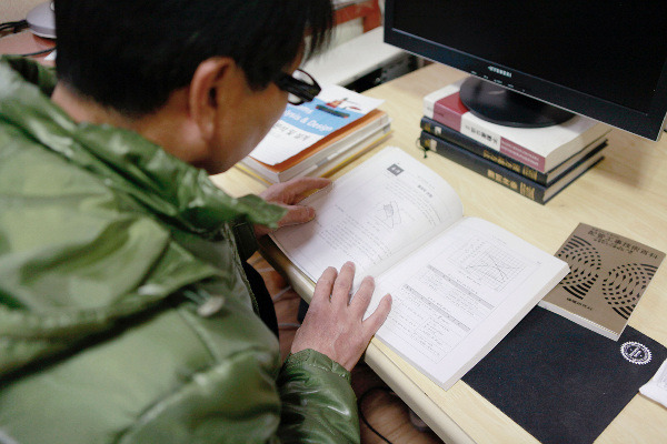 [틈날 때마다 참고서적을 통해 집수리에 필요한 이론을 습득하는 이건봉 씨]