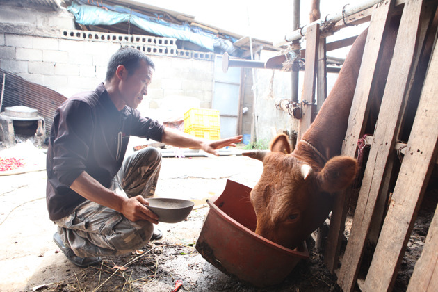 고향에 내려온 동우 씨는 여름엔 농사일을 하고 겨울엔 군청 일을 도와 숲 가꾸기를 했습니다. 그러나 1년 동안 열심히 일해도 평균 한 달에 100만 원 정도 밖엔 벌지 못했습니다. 집 마당에 안 쓰는 창고를 개조해서 소를 키우면 돈이 될까도 싶어 시작했는데, 복돌이, 복순이라는 이름을 지어주고는 정이 들어 팔지도 못하고 결국 논에 줄 퇴비나 얻는다는 생각으로 가족처럼 함께 생활하고 있습니다.