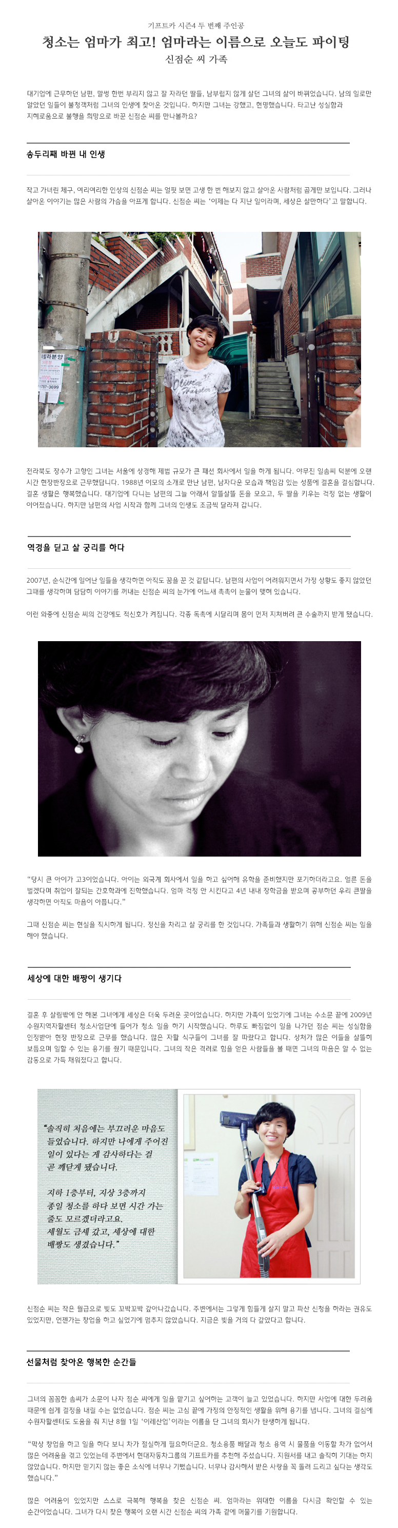 삶의 얼룩은 말끔히 치우고 희망의 꿈은 활짝 펼치다.