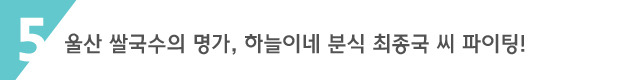 최종국 씨: 전에 칼국수 장사할 때 쓰던 그릇이며 설비들을 다시 꺼내고 있어요. 돈은 한정되어 있고 새로 사야 하는 것들은 많고, 그래서 쓸 수 있는 것들을 최대한 활용해보려고요. 하늘이도 학교 졸업하면 사업을 하고 싶어하기 때문에 옆에서 많이 도와주고 있어요. 주말엔 자기도 나가겠다며 얼른 사업 시작하자고 계속 보채요. 그런 하늘이가 고맙고 기특해요.
