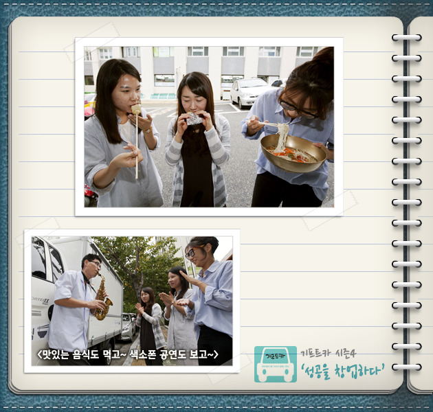 최종국 씨: 노트 필기를 정말 열심히 했습니다. 아직도 한번씩 들여다보고 그때 말씀해주셨던 이야기들을 되새기고 있습니다. 그때 김상훈 소장님의 ‘꿈을 가지면 늙지 않는다. 웃을 수 있어야 진짜 웃는 인생이다’ 라는 말씀이 가장 기억에 남는데요. 정말 기프트카를 받은 후로 계속 웃게 되는데, 그 말씀처럼 꼭 성공해서 진짜로 웃고 싶습니다.