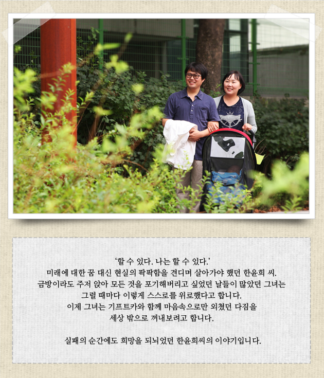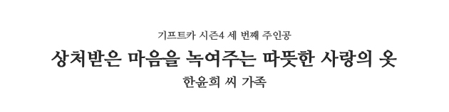 오랜 시간, 끝날 줄 모르고 찾아오는 시련에도 포기하지 않고 다시 일어선 한윤희 씨에게 기프트카가 희망의 발이 되어주기를 기원합니다.