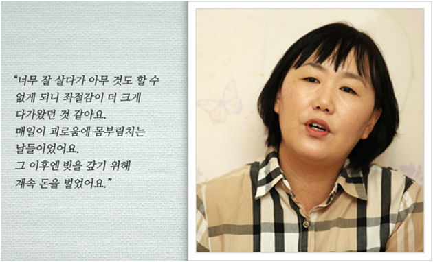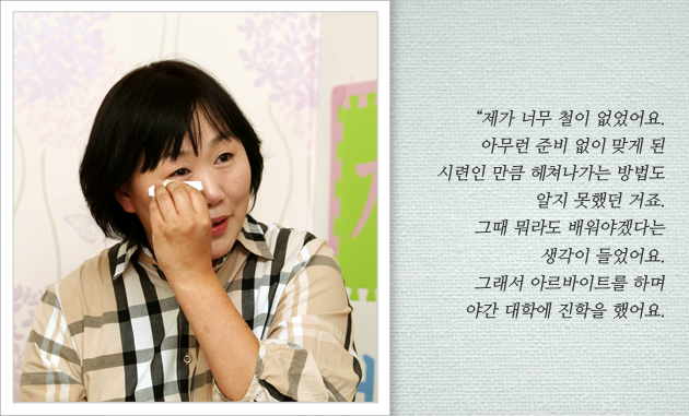 비슷비슷한 집들이 늘어서 있는 서울의 주택가. 한윤희 씨는 지금까지의 힘들었던 삶의 이야기들을 담담하고 낮은 목소리로 풀어냅니다. 역경의 시간들을 조심스럽게 꺼내면서도 미소를 잃지 않았던 한윤희 씨의 이야기를 지금부터 함께 들어볼까요?