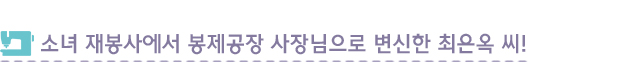 지금까지 최은옥 씨를 괴롭혀온 북한이탈주민이라는 꼬리표가 이젠 그녀에게 많은 위안을 주고 있다고 합니다. 태어난 곳도 다르고 한국으로 오게 된 사연도 제각각이지만 서로의 외로움을 달래주는 친가족 같은 동료들이 있기 때문이라고 하는데요. 말 그대로 최은옥 씨와 동료들은 몇 푼 안 되는 월급에도 함께 일하고 함께 잘 살기 위해 발전해가고 있었습니다. 한 땀 한 땀 정성이 깃든 꼼꼼한 재봉으로 행복을 채워가는 최은옥 씨의 새터애협동조합을 소개합니다.