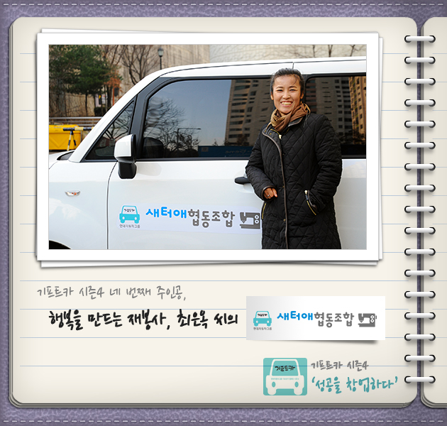 낯선 한국땅에 와서 정착하기까지 가슴 아픈 일들도 많이 겪어보고, 기프트카의 주인공이 되는 좋은 기분도 맛보게 되었다는 최은옥 씨. 최은옥 씨는 기프트카 사업을 통해 이루고 싶은 것이 있다고 합니다. 기프트카에 지원하는 다음 북한이탈주민들을 위해 최은옥 씨의 몫을 톡톡히 다해내는 것입니다. 자신이 좋은 예가 되어 더 많은 분들이 기프트카라는 좋은 선물을 받으실 수 있도록 말입니다. 최은옥 씨의 간절한 소망이 이루어질 수 있도록 여러분의 힘찬 응원 부탁 드립니다.