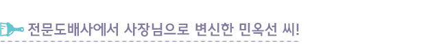 민옥선 씨: 당장은 인맥을 넓히면서 많은 고객을 확보하는 것을 목표로 삼고 있습니다. 혹시나 목 디스크로 현장 일이 힘들어질 때를 대비해서 4~5년 후엔 도배와 장판, 창호시공 등을 전문으로 하는 인테리어 사업장을 운영하려고 합니다. 자격증도 쌓고 현장 경험도 넓히면서 차근차근 단계를 밟아나갈 생각입니다.
