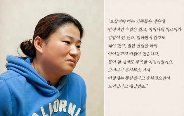 낮에는 자활근로를 하고 밤에는 공부를 하며 생활의 안정을 찾긴 했지만, 무섭도록 빨리 자라는 세 남매의 양육비를 감당하려면 지금보다 더 많이 움직이고 부지런히 벌어야 했습니다. 꿈에 그리던 창업을 하고 싶어도 그 동안 모아놓은 돈으로는 가게 보증금에 턱없이 모자랐습니다.