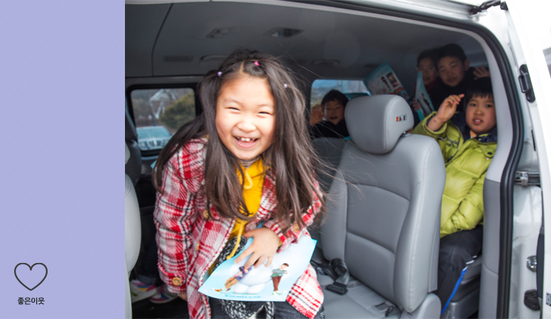 아이들은 차에 타자마자 진짜 기프트카가 맞냐며 한껏 들뜬 모습입니다. 부모님을 따라서 일 년에 한 두 번 영화관을 가봤지만, 친구들과 함께 영화관에 간 것은 이번이 처음이라며 신나했고, 부모님이 타던 차보다 넓고 조용하다며 즐거워했어요.
