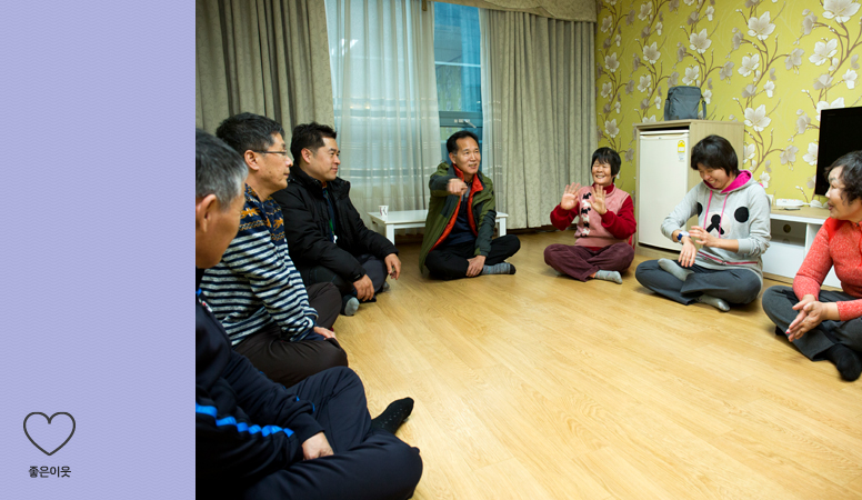대방동의 숙소에 도착하자, 마음이 놓인 듯 이야기마을 가족의 표정이 편안해 보입니다. 오늘 여행의 소감과 내일에 대한 설렘이 이야기꽃으로 피어납니다.