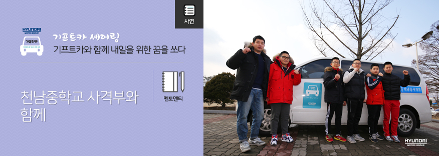 기프트카 셰어링은 천남중학교 선수들을 위해 실내 공간이 넉넉한 스타렉스와 이동에 필요한 활동비를 지원했습니다.