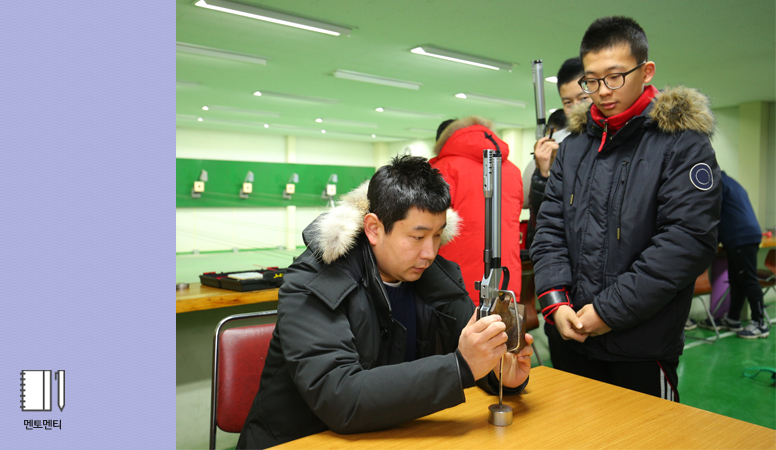 대회 참가를 위해 천남중학교 사격부 선수들이 준비를 시작합니다. 겨울 내내 이번 대회를 준비했다는 선수들의 해맑은 미소 너머로 긴장한 모습이 역력했어요. 코치님은 긴장한 선수들을 일일이 다독이며 장비를 세심하게 확인해주었습니다.