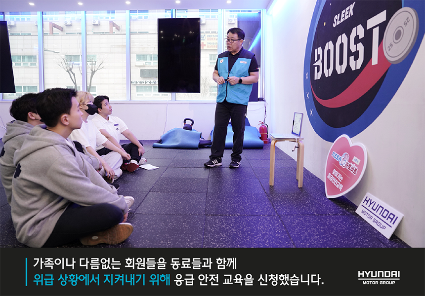 A. 최근 50대 성인이 무인 헬스장에서 운동하다 심정지로 사망했다는 뉴스를 봤어요. ‘빨리 응급조치했다면…’하는 안타까운 마음이 들었죠. 더욱이 제가 헬스 트레이너로 근무하고 있다 보니 당시 사고가 크게 와닿더라고요. 평소 가족처럼 가깝게 지내는 회원분들에게 위급 상황이 생기면 어쩌나 싶어 아찔하기도 했죠. 동료 트레이너들과 응급 안전 교육을 받으면 좋겠다고 생각하던 차에 인스타그램에서 기프트카 하트비트 캠페인을 발견하고 ‘이거다!’ 싶었어요. 동료들도 좋은 기회라며 적극적으로 참여 의사를 밝혀 함께 신청하게 됐습니다.