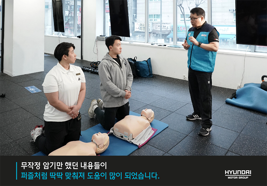 Q. 기프트카 하트비트 캠페인을 통해 응급 안전 교육을 받아보신 소감이 어떠셨나요? 함께하신 동료 트레이너분들의 반응도 궁금합니다.