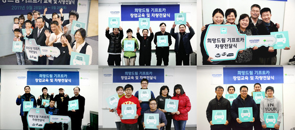 지난 2월 종료된 희망드림 기프트카 시즌2에서는 이 세 명을 포함한 총 30명의 주인공들에게 소중한 차량이 선물되었습니다. 생업에 꼭 필요한 차량과 든든한 창업지원을 발판으로 주인공들 모두 새로운 희망을 꿈꾸게 되었답니다. 기프트카 시즌3에서는 차량구입비, 창업교육과 컨설팅 이외에 500만원 상당의 창업지원금이 추가되어 서민창업을 위한 지원을 강화한 만큼, 창업을 꿈꾸는 우리 이웃들이 한층 더 폭넓은 혜택을 누릴 수 있게 될 것입니다.