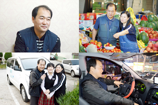 네 식구를 책임지는 ‘오뚝이 아빠’ 이철제 씨는 충북 청주시 육거리 시장에서 과일을 판매하고 있습니다. 16년 전 일어난 대형 교통사고와 잇따른 중고차 사업실패에도 오뚝이처럼 일어나 시작한 과일 장사였지만, 2010년 과일값 폭등을 겪으며 또다시 위기를 맞았습니다. 기프트카 주인공으로 소개될 당시 그는 힘들게 장만한 트럭을 처분한 까닭으로 장사에 어려움이 많았는데요. 질 좋은 과일을 제값에 들일 수가 없어 수입도 줄었고, 배달할 때는 매번 손수레를 끌거나 콜밴을 불러야 했습니다. 이전처럼 생산지에서 직접 좋은 상품을 공수해 수월하게 배달하기 위해서는 차량이 꼭 필요한 상황이었지요.