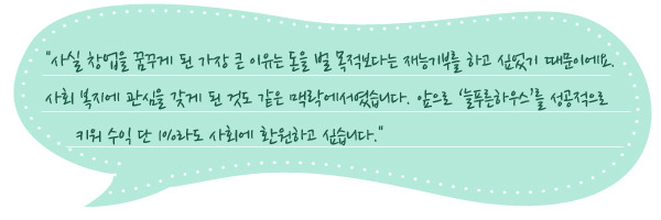또 다른 목표는 사회복지기관을 설립하는 것입니다. 현재 그는 퇴근 후 틈틈이 사이버대학을 통해 사회복지학을 공부하고 있는데요. 얼마 전에는 우수한 성적으로 장학금을 받기도 했습니다. 대원 씨는 앞으로 10년 안에 꼭 복지기관을 설립해 자신과 비슷한 어려움을 겪고 있는 사람들에게 자립 의지만 있다면 성공할 수 있다는 것을 보여주고 싶다고 합니다.