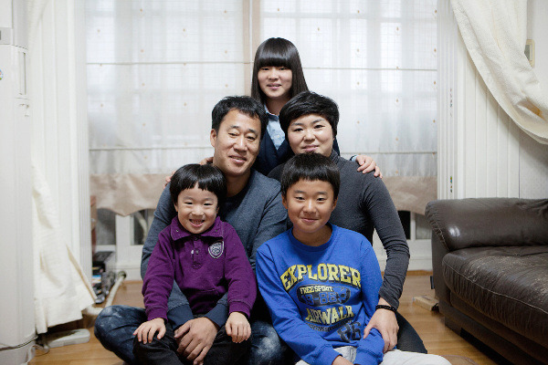 [더 나은 내일을 준비하는 김은주 씨 가족 ? 윗줄부터 맏딸 민정, 김은주 씨 부부, 막내 성운(좌), 둘째 성우(우)]