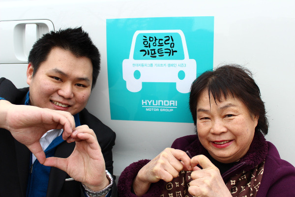 [기프트카로 마음이 여유로워지며 애정표현이 부쩍 늘었다는 김종성 씨와 어머니]