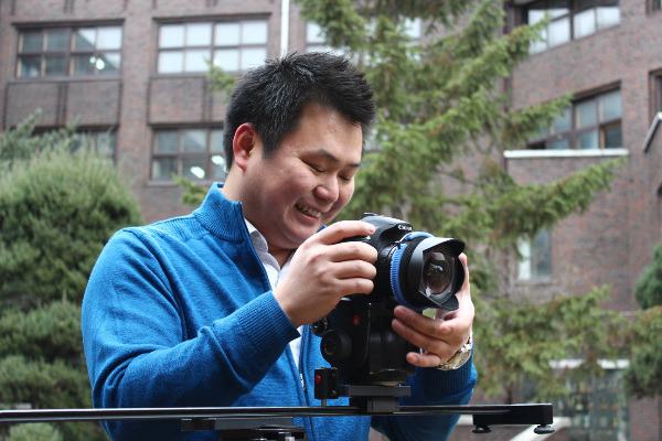 [새로 장만한 카메라로 영상촬영을 하고 있는 김종성 씨]