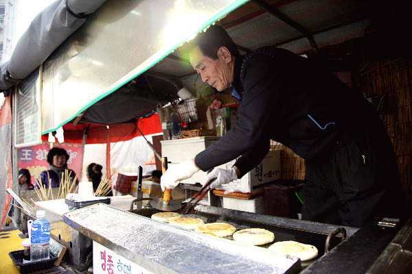 [정성을 다해 호떡을 굽는 고두완 씨의 모습]