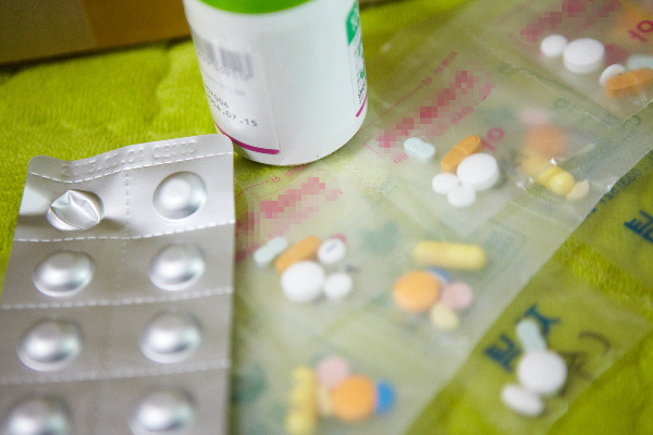 [남편 손정열 씨가 매일 복용하고 있는 수십 개의 알약들]