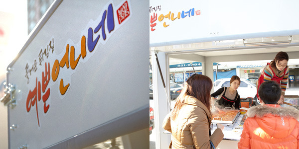 심영숙 씨의 창업 성공을 위해 창업지원금 이외에도 다양한 지원이 이어졌습니다. 그녀의 마음을 든든하게 하는 ‘즐거운 튀김집 예쁜언니네’ 상호도 기프트카 시즌3의 상호 및 로고 개발 지원으로 탄생한 것인데요. 주메뉴인 튀김을 강조한 이 상호에는 이웃집 언니처럼 친근하고 즐겁게 음식을 판매하고 싶다는 영숙 씨의 마음이 담겨 있습니다. 멀리서도 눈에 띄고 외우기도 쉬운 이 상호는 벌써 주변 사람들이 알아보고 먼저 다가올 정도랍니다. 영숙 씨는 마케팅 지원금으로 이 로고와 전화번호가 적힌 스티커를 제작해 다른 스낵카와 차별화된 홍보전략을 펼칠 계획입니다.