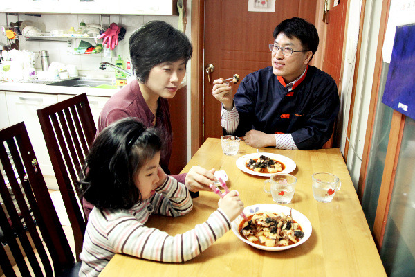 [가족과 함께 직접 만든 깻잎 떡볶이를 시식하는 안유수 씨]