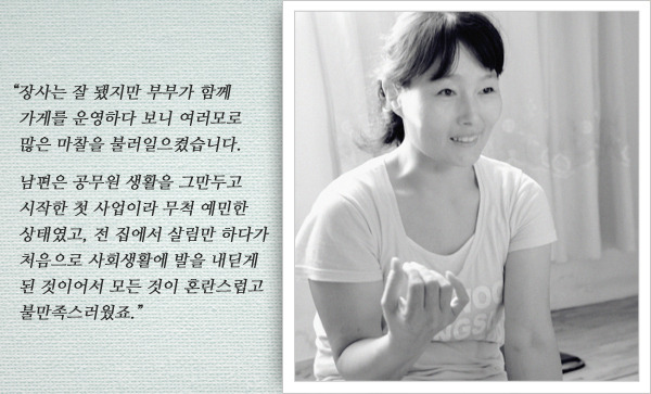 부부의 불화는 사업실패로 이어졌고, 수개월 방황하던 남편은 어느 날 갑자기 사라졌습니다. 행방불명 된 남편이 걱정되기 보다는 자신과 아이들을 떠난 남편의 무책임한 행동에 원망이 더 컸습니다. 그러나 지금은 그저 안타까운 마음만 남아있을 뿐, 어딘가에 살아있다면 아이들 걱정은 말고 잘 살아주었으면 좋겠다며 애써 미소를 지어 보이십니다. 이제 그녀가 지켜야 하는 것도 의지할 수 있는 것도 두 아들뿐입니다.