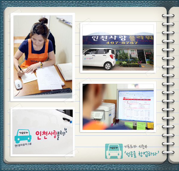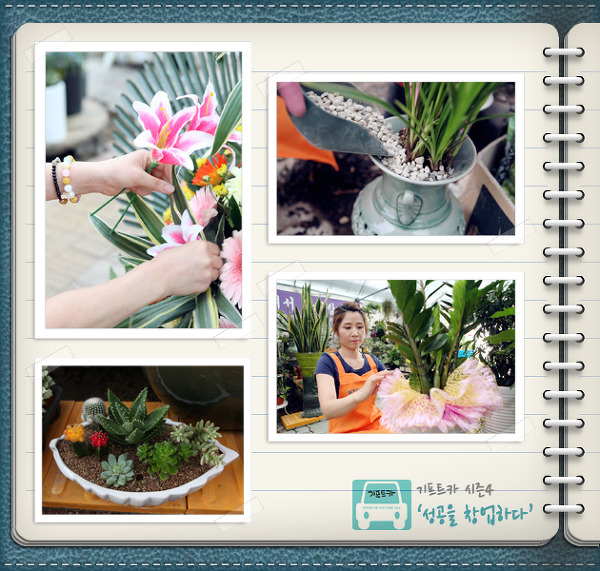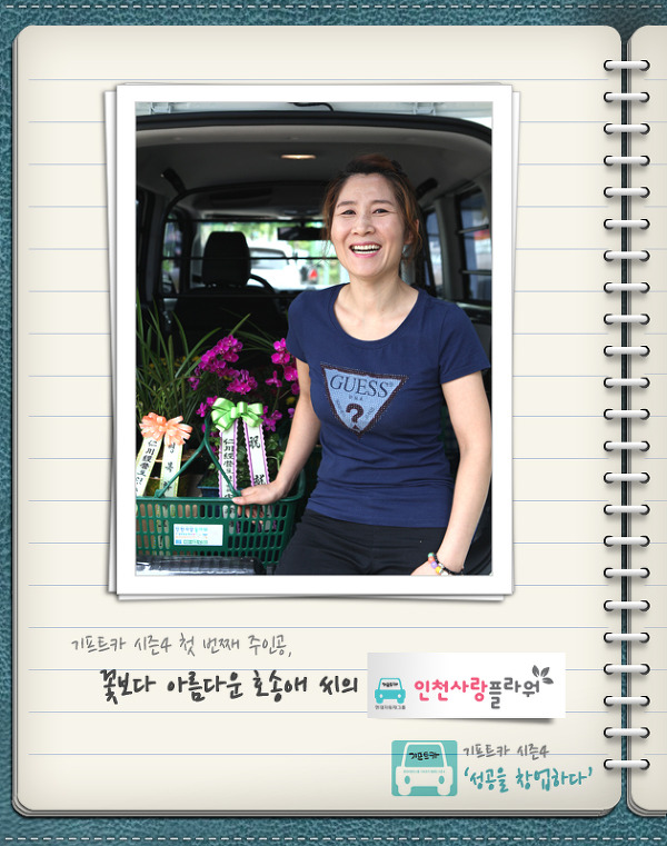 기프트카로 인천 꽃 시장은 물론, 남서울, 광명 화훼 단지까지 접수한 호송애 씨. 매일 아침 일찍 출근해서 가게 정리하고 가게에 필요한 꽃들과 식물을 주문하고 나면 기운이 쏙 빠지는데, 배달을 위해 기프트카에 타기만 하면 꽃 향기와 함께 금새 힘이 불끈 솟는다고 합니다.