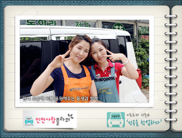 집에 앉아있을 시간이 없을 만큼 바쁜 호송애 씨는 오늘도 동생과 함께 고객의 소중한 마음 그대로를 전달하고자 노력하고 있습니다. 기프트카와 함께 행복을 가꾸어가는 호송애 씨에게 힘차게 응원해주세요.