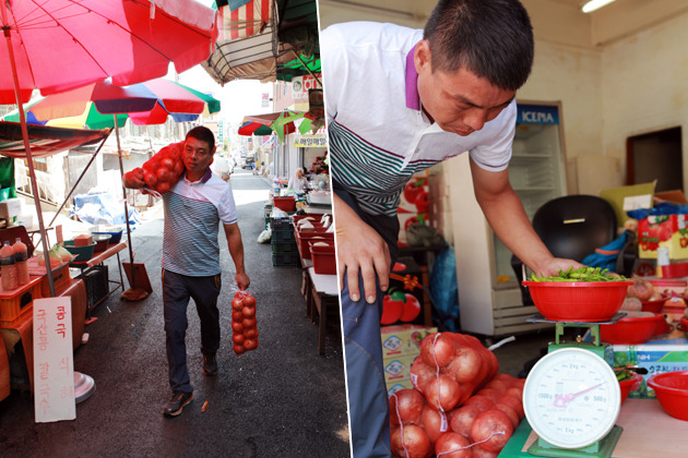 요즘 범용 씨의 하루는 새벽 3시부터 시작됩니다. 매장 납품 차에 물건들을 실어주고 판매와 거래처 배달 일도 도맡고 있습니다. 모두가 잠들어 있는 새벽 시장에는 활기가 넘친다고 합니다. 범용 씨는 열심히 일하는 상인들을 보며 지난날의 나태함을 반성하기도 한답니다. 언젠가 아이들에게 시장에서 일하는 부지런한 사람들의 모습을 보여주고 싶다고도 말합니다.