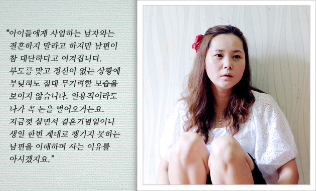 “그때 생각하면 아내에게 제일 미안합니다. 매일 고생만 시켰으니까요. 아내를 볼 면목이 없었습니다. 게다가 우리는 재혼입니다. 그래서 더 행복하게 해줘야 할 의무가 저에게 있다고 생각합니다. 하지만 아내는 슬픔도, 힘듦도 감춰가며 언제나 묵묵히 기다려 줬습니다. 아내가 없었다면 절망적인 상황을 헤쳐나가지 못했을 것 같습니다.”
