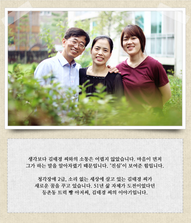 초등학교에 입학하기 전, 갑자기 소리를 잃어버린 김태경 씨. 세상의 소리가 들리지 않아 병원에 찾아가봤지만, 의사는 원인을 모르겠다며 태경 씨를 돌려보냈습니다. 어린 나이에 감당하기 힘든 장애를 떠안고 살아가게 된 것이지요.