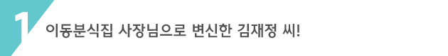김재정 씨: 26년의 경력으로 남들에게는 없는 손맛이 저에게는 확실히 있는 것 같습니다. 그렇지만 지금은 현재 다른 분식집에서 만드는 것을 먼저 만들고 배우고 싶어요. 그게 지금 사람들의 입맛에 가장 가까울 거라고 생각하거든요. 전 직장인뿐 아니라 학생과 주부들까지 전부 제 고객으로 만들고 싶습니다. 그러니 남들처럼 만들되 더 맛있게 만들어야죠.