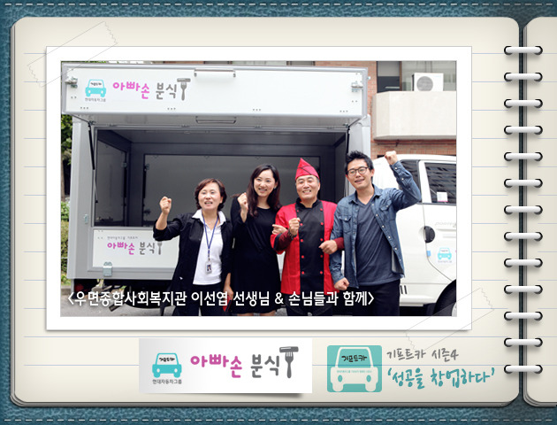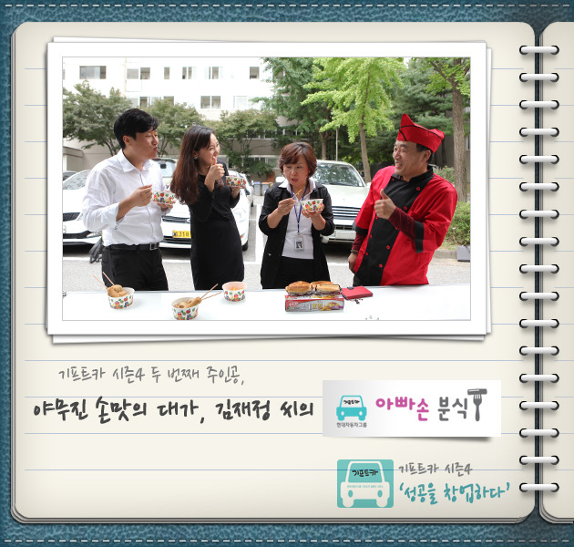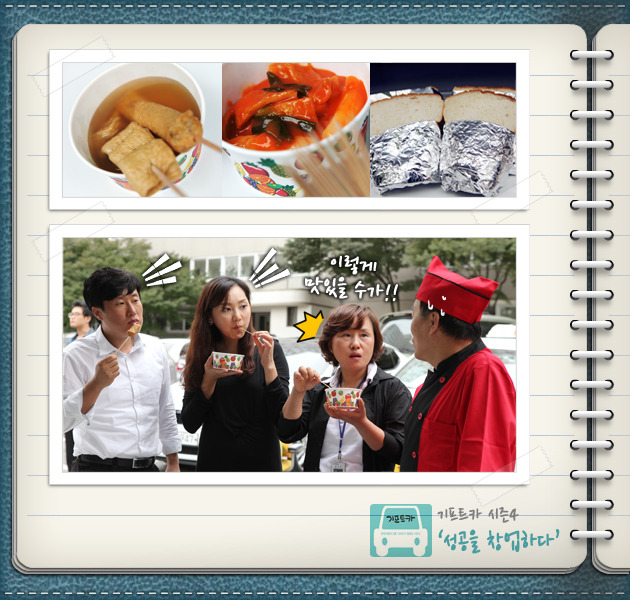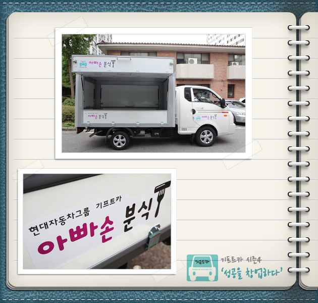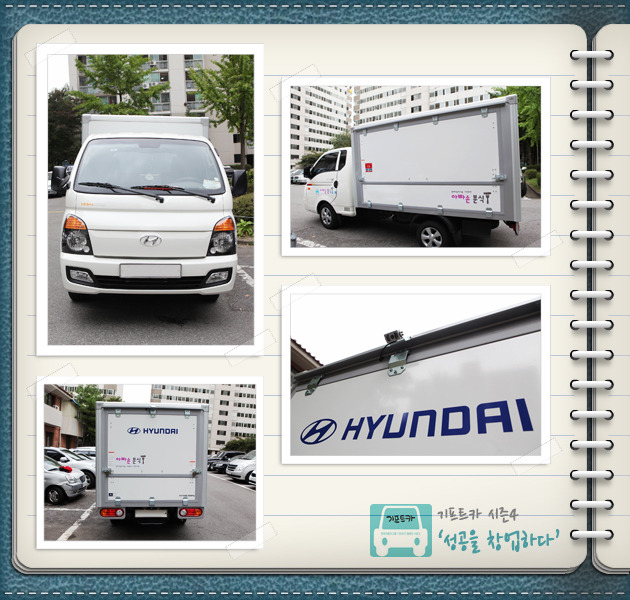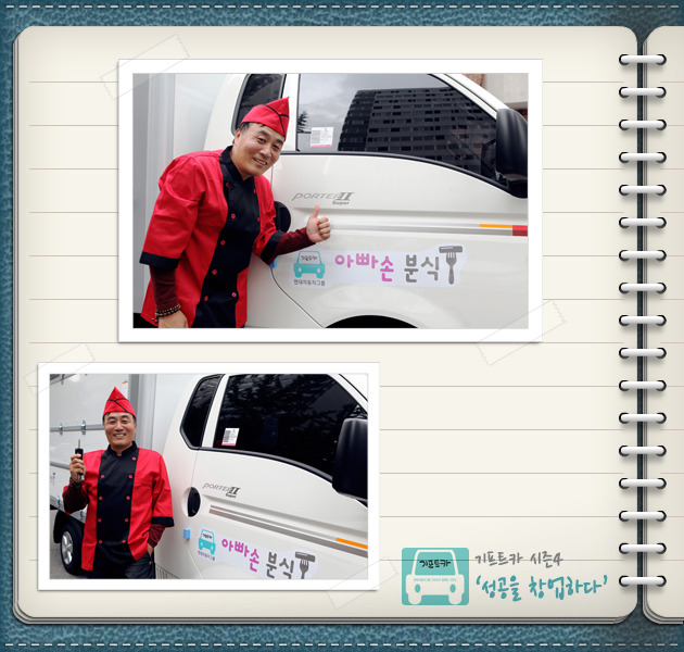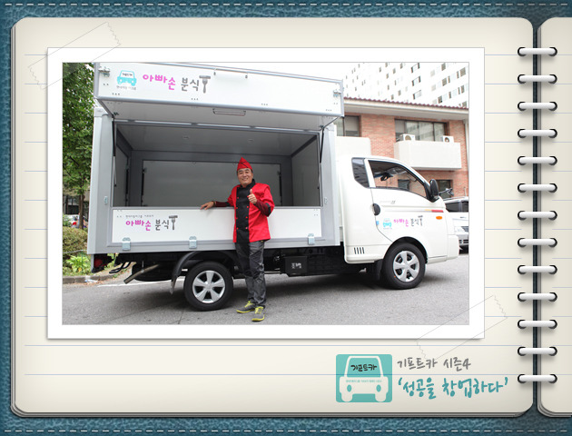 김재정 씨: 제가 운전 하나는 또 기똥차게 잘합니다. 벌써 기프트카 몰고 다니면서 어디에서 좋은 재료를 파는지 시장조사도 하고 있고, 이동 분식 설비는 어디가 싸게 잘하는지 찾아 다니고 있습니다. 지금은 사람들 붐비는 시간에 맞춰 적은 양이지만 음식을 준비해 경험 삼아 팔고 있습니다. 분식설비만 완벽하게 갖춰지면 본격적인 사업은 곧 다가올 아내와의 결혼기념일에 맞추어 시작하려고 합니다. 새로운 마음으로 시작하려고요