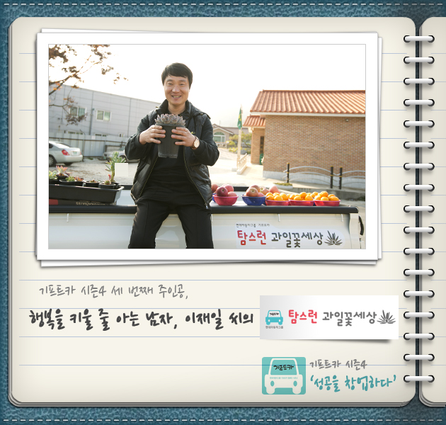 이재일 씨: 솔직히 처음에 탐스런 과일꽃세상이라는 상호를 받았을 때는 조금 낯설었어요. 그런데 상호가 부착된 차를 보니까 딱 이거구나 싶더라고요. 탐스런 과일꽃세상이라는 상호는 지금 제 사업과 제일 잘 어울리는 것 같습니다.