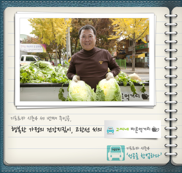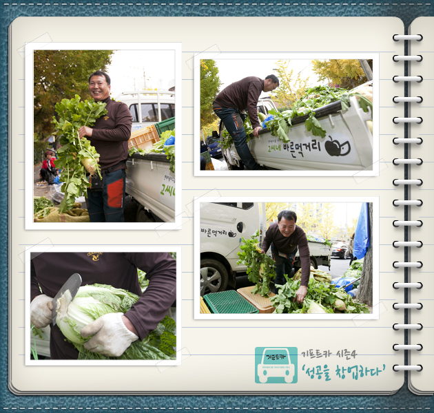 고한선 씨: 기프트카를 받자마자 밭으로 바로 찾아갔어요. 전에도 청과물 판매를 했었던 터라 아는 곳이 많이 있거든요. 곧 있으면 김장철이라서 배추와 무의 상태를 살펴보기 위해 그 넓은 밭을 다 돌아봤습니다. 아는 분들이 농사짓는 곳이어서 믿을 수 있긴 하지만, 이제 농산물 전문 판매자가 되었으니 제가 직접 눈으로 보고 만지면서 확실하게 살펴봐야죠. 그날 계약을 하고 다음날 기프트카에 농작물을 싣고 와서 바로 판매를 시작했습니다. 아주머니들이 배추와 무를 보더니 흡족해하시고 주문도 많이 해주셔서 하루하루 정신 없이 보내고 있습니다.