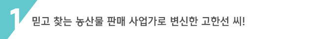 고한선 씨: 앞으로의 목표는 지금처럼 좋아하는 농산물을 계속해서 판매하는 거예요. 나중에 제 가게도 갖고 좋은 집도 얻어서 우리 은빈이랑 행복하게 살면 더 바랄 게 없죠.