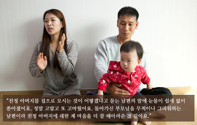 힘든 상황은 사랑도 쉽게 변하게 한다고는 하지만, 두 사람은 서로를 향한 사랑으로 예쁜 가정을 꾸려 나갔습니다. 장용숙 씨는 오랜 시간 동안 함께하지 못했던 친정 아버지도 모시게 되었습니다.