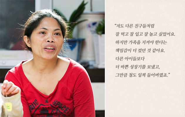 필리핀의 작은 마을에서 태어난 야폿리자 씨는 어렸을 때부터 생활력이 강해 주위 사람들에게 똑순이로 불렸습니다. 넉넉하지 않았던 가정 형편으로 어린 동생들을 돌봐야 했기에 아주 적은 보수의 일이라도 가리지 않고 열심히 일했던 야폿리자 씨는 어린 시절, 친구들과의 추억보다는 가족들을 지키기 위해 고군분투하던 기억이 더 많이 남아있다고 합니다.