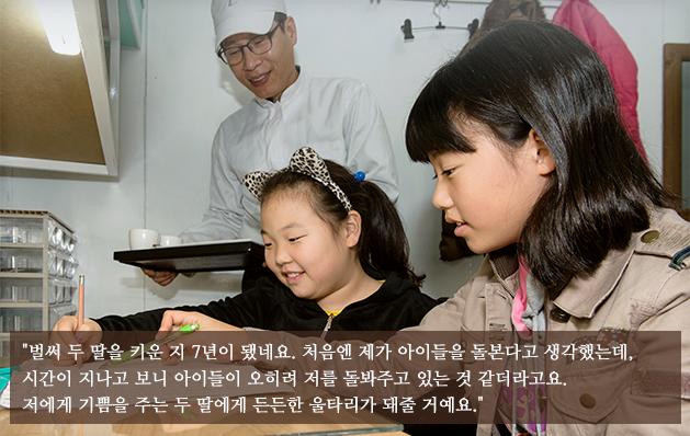 이혼 후 막연한 우울함에 모든 것을 세상의 탓으로 돌려보기도 했다던 김동환 씨. 하지만 이내 제자리로 돌아올 수밖에 없었다고 합니다. 아직 다섯 살, 세 살밖에 되지 않은 아이들을 위해 무엇이라도 시작해야만 했기 때문입니다. 이제부터는 아이들을 위해 살자고 마음먹은 김동환 씨는 아이들을 올바르게 키우기 위해 많은 노력을 기울이기 시작했습니다. 하지만 홀로 아이들을 양육하며 일을 하는 것은 만만치 않았습니다.