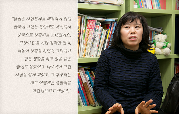 이한수 씨 부부는 그렇게 각자 다른 곳에서 힘든 시간을 보내며 서로를 그리워했습니다. 그러다가 재작년 무렵, 아내 조금옥 씨가 아이들을 데리고 8년 만에 한국으로 들어오며 이한수 씨 가족은 함께 살아가게 되었습니다. 겨우 마련한 작은 월세 집에서 여전히 힘든 생활을 해야 했지만, 그래도 가족들과 함께 있다는 사실에 이한수 씨는 다시 시작할 용기를 낼 수 있었습니다.