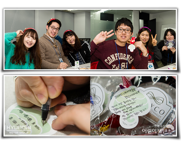 다들 자신이 만든 헤어밴드를 한 번씩 써보며 멋지게 완성되었는지 확인해보는데요. 아이들에게 진심이 가득 담긴 편지까지 써서 헤어밴드와 함께 예쁘게 포장까지 했답니다.