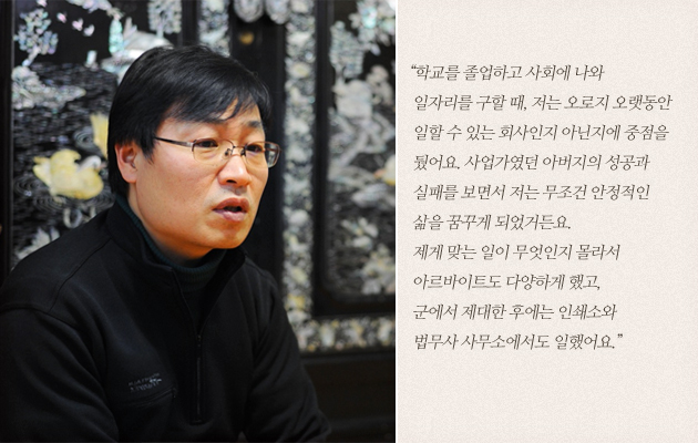그러나 자신의 바람과 달리 쉽게 한곳에 둥지를 틀지 못하고 근무 조건이 맞지 않아 이곳저곳 옮겨 다니던 유영호 씨는 어느 날 중견 의류 업체에 취직하게 되었습니다. 규모는 크지 않았지만, 자신이 찾던 안정적인 직장이라는 생각에 그제야 마음을 놓은 유영호 씨는 성실하게 일하며 착실히 미래를 준비했습니다. 그러나 직장 생활에 대한 안도감은 오래가지 못했습니다.