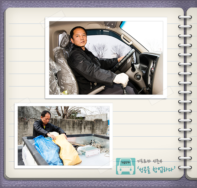 배동규 씨: 기프트카를 받고 나서 곧바로 고물을 수거하러 다니다 보니 어느새 차에 한가득 실렸더라고요. 그 뒤로도 고물 수거는 매일 나가고 있어요. 그런데 이것만으로는 벌이가 많지 않아서 3일에 한 번씩은 건설 현장을 돌면서 건설폐기물들을 실어 올 예정이에요.
