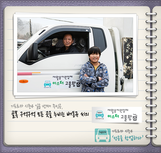 배동규 씨: 기프트카를 받았을 때 동네에서 같은 일을 하시는 분들께 먼저 알려드렸는데, 상호가 제 이미지와 딱 맞는다며 잘 지었다고 하시더라고요. 정말 기분이 좋았죠. 왠지 기프트카만 타면 제가 진짜 미스터 고물왕이 된 것 같아요!