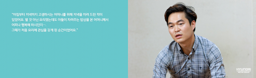 “저와 어머니가 중국에서 살 때의 일이에요. 어머니께선 아침부터 저녁까지 밖에서 일을 하셨어요. 고생하시는 어머니를 위해 저녁을 차려 드린 적이 있었어요. 별 것 아닌 요리였는데도 아들이 차려주는 밥상을 본 어머니께서 어찌나 행복해 하시던지…. 그때가 처음 요리에 관심을 갖게 된 순간이었어요.”