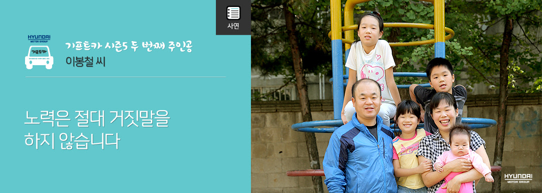 봉철 씨의 바람은 안정적으로 사업을 운영하고, 여유가 생기면 온 가족이 일본에 여행을 가는 것입니다. 결혼 후 한 번도 일본에 가지 못한 아내를 위해 꼭 일본에 가고 싶다는 이봉철 씨. 이제는 새벽부터 밤까지 봉철 씨와 든든하게 함께 달리는 기프트카의 모습을 상상해봅니다.