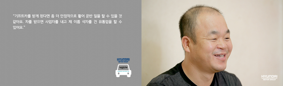 “기프트카를 받게 된다면 좀 더 안정적으로 활어 운반 일을 할 수 있을 것 같아요. 10여 년 동안 쌓아온 인맥으로 좋은 품질의 활어를 경쟁력 있는 가격에 구입할 수 있거든요. 그 동안은 유통 회사에 소속되어 일을 해왔지만, 차를 받으면 사업자를 내고 제 이름 석자를 건 유통업을 할 수 있어요.”