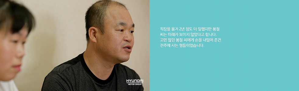 순창에서 태어나고 자란 이봉철 씨는 고등학교 졸업 후 사촌 형님을 따라 서울로 올라왔습니다. 서울에서 열심히 일도 하고 돈도 모을 생각이었습니다. 사촌 형님이 운영하는 공업사에 들어가 무엇이든 열심히 했습니다. 3년 동안 밤낮으로 일했지만, 조그마한 공업사는 IMF라는 큰 장벽을 뛰어넘지 못하고 말았습니다. 직장을 옮겨 2년 정도 더 일했지만 봉철 씨는 미래가 보이지 않았다고 합니다. 고민 많던 봉철 씨에게 손을 내밀어 준 건 전주에 사는 형님들이었습니다.